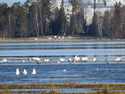 Eilen lähtivät jäät Sundominlahdelta. Tämä tarkoittaa sitä, että lintujen tarkkailua ja lintubongausta harrastaville on oiva mahdollisuus ihan kaupungin rannoilta seurata tätä jokakeväistä kiihkeää ja nopeaa vesilintujen pariutumis- ja pesintäpuuhaa. Etenkin mataloitunut lahdenpohjukka on erinomaisen hyvää pesintäaluetta monellekin lintulajille.